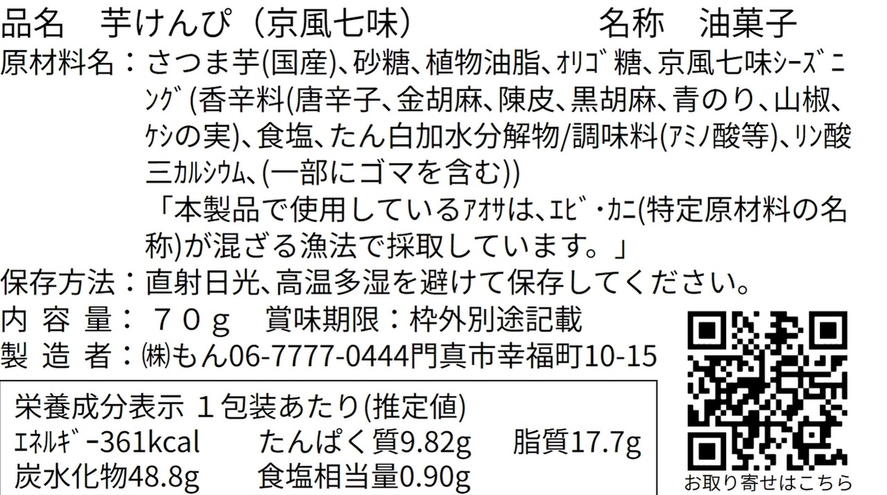 人気の芋けんぴに京風七味シーズニングで味付け!